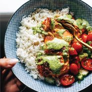 Very delicious! What a healthy and tasty meal. The basil sauce is perfect and goes wonderfully with the rice too!